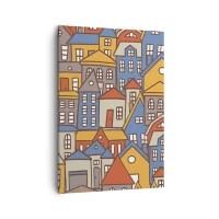 Impression sur toile - Image sur toile - Maisons colorées dans un style graphique sur fond clair - 50x70cm - Derrière la maison, une maison - Décoration murale moderne pour le salon et la chambre ARTTOR