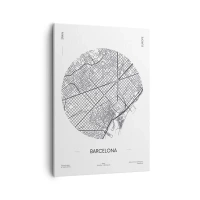 Impression sur toile - Image sur toile - Une carte de Barcelone dans un style minimaliste en noir et blanc - 50x70cm - Anatomie de Barcelone - Décoration murale moderne pour le salon et la chambre ARTTOR