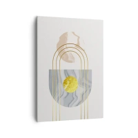 Impression sur toile - Image sur toile - Une composition géométrique avec des cercles et des rectangles aux couleurs sobres. - 50x70cm - Essence des choses - Décoration murale moderne pour le salon et la chambre ARTTOR
