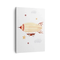 Impression sur toile - Image sur toile - Un dirigeable peint à la main sur fond d'étoiles - 50x70cm - Dirigeable - Décoration murale moderne pour le salon et la chambre ARTTOR
