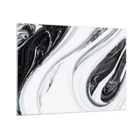 Impression sur verre - Image sur verre - Lignes tourbillonnantes noires et blanches ressemblant à du marbre dans un style abstrait - 70x50cm - Une combinaison d'opposés - Décoration murale moderne pour le salon et la chambre ARTTOR