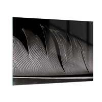 Impression sur verre - Image sur verre - Gros plan noir et blanc d'une plume présentée sous une lumière contrastée. - 70x50cm - La plume – un design magnifique - Décoration murale moderne pour le salon et la chambre ARTTOR