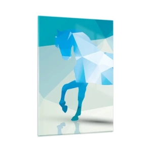 Impression sur verre - Image sur verre - Cheval géométrique dans les tons bleu et blanc - 50x70cm - Cheval géométrique en turquoise - Décoration murale moderne pour le salon et la chambre ARTTOR