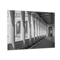 Impression sur verre - Image sur verre - Une colonnade en noir et blanc avec un jeu rythmique d'ombre et de lumière - 70x50cm - Arcade ensoleillée - Décoration murale moderne pour le salon et la chambre ARTTOR