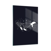 Impression sur verre - Image sur verre - Silhouette blanche graphique d'une baleine flottant dans l'espace - 50x70cm - Dans l'océan de l'univers - Décoration murale moderne pour le salon et la chambre ARTTOR