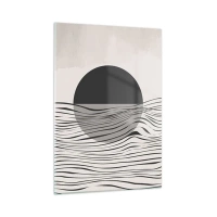 Impression sur verre - Image sur verre - Des vagues noires et un cercle sur fond beige - 50x70cm - Demi composition - Décoration murale moderne pour le salon et la chambre ARTTOR