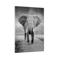 Impression sur verre - Image sur verre - Éléphant dans la savane en noir et blanc - 50x70cm - Les hôtes vous saluent - Décoration murale moderne pour le salon et la chambre ARTTOR