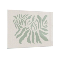 Impression sur verre - Image sur verre - Formes organiques en vert sur fond beige - 70x50cm - Parmi la verdure - Décoration murale moderne pour le salon et la chambre ARTTOR