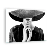 Impression sur verre - Image sur verre - Femme élégante en noir avec un chapeau couvrant son visage - 70x50cm - Beauté cachée - Décoration murale moderne pour le salon et la chambre ARTTOR