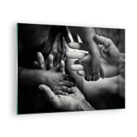 Impression sur verre - Image sur verre - Poignée de main symbolique en noir et blanc de différentes générations - 70x50cm - Être humain - Décoration murale moderne pour le salon et la chambre ARTTOR