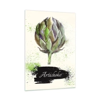 Impression sur verre - Image sur verre - Graphique d'artichaut à l'aquarelle avec le mot Artichaut écrit dessus - 50x70cm - Vive les légumes! - Décoration murale moderne pour le salon et la chambre ARTTOR