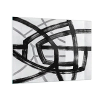 Impression sur verre - Image sur verre - Lignes noires dynamiques sur fond clair dans un style abstrait. - 70x50cm - Fantaisie en noir et blanc - Décoration murale moderne pour le salon et la chambre ARTTOR