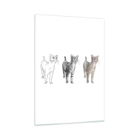 Impression sur verre - Image sur verre - L'évolution d'un chat, du croquis à l'illustration en couleur - 50x70cm - Leçon de dessin - Décoration murale moderne pour le salon et la chambre ARTTOR