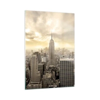 Impression sur verre - Image sur verre - Panorama de la ville avec des gratte-ciels et l'Empire State Building - 50x70cm - New York tissé de gris - Décoration murale moderne pour le salon et la chambre ARTTOR