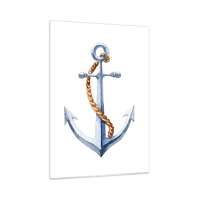 Impression sur verre - Image sur verre - Ancre avec corde de style nautique - 50x70cm - Ah l'aventure ! - Décoration murale moderne pour le salon et la chambre ARTTOR