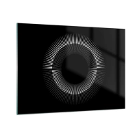 Impression sur verre - Image sur verre - Rayons blancs formant un cercle sur fond noir - 70x50cm - Soleil noir - Décoration murale moderne pour le salon et la chambre ARTTOR