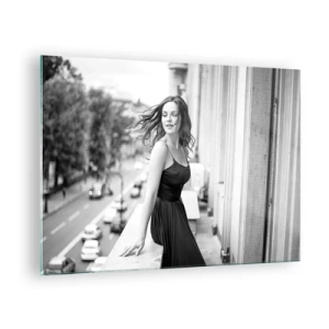 Impression sur verre - Image sur verre - Une femme en robe noire sur un balcon de style parisien - 70x50cm - Certainement un Parisien - Décoration murale moderne pour le salon et la chambre ARTTOR
