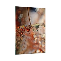 Impression sur verre - Image sur verre - Gouttes d'eau sur une délicate toile d'araignée sous une lumière bokeh - 50x70cm - Enfilé sur un fil d'araignée - Décoration murale moderne pour le salon et la chambre ARTTOR
