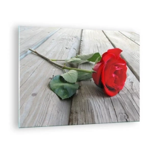 Impression sur verre - Image sur verre - Rose rouge sur une planche de bois - 70x50cm - Étude écarlate - Décoration murale moderne pour le salon et la chambre ARTTOR