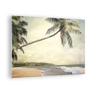 Impression sur verre - Image sur verre - Plage tropicale avec palmiers et vagues - 70x50cm - Rêve tropical - Décoration murale moderne pour le salon et la chambre ARTTOR