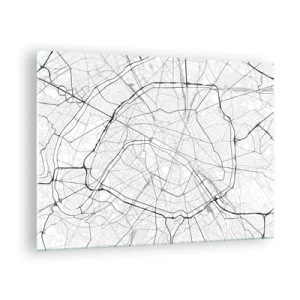 Impression sur verre - Image sur verre - Plan de la ville en noir et blanc avec quadrillage des rues et artères circulaires - 70x50cm - Fleur de Paris - Décoration murale moderne pour le salon et la chambre ARTTOR