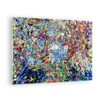 Impression sur verre - Image sur verre - Motifs abstraits colorés rappelant les vitraux - 70x50cm - Goutte de vitrail - Décoration murale moderne pour le salon et la chambre ARTTOR
