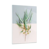 Impression sur verre - Image sur verre - Un brin d'eucalyptus sur fond pastel - 50x70cm - Subtilité pastel - Décoration murale moderne pour le salon et la chambre ARTTOR