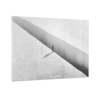 Impression sur verre - Image sur verre - Une silhouette minimaliste au-dessus d'un précipice dans un espace lumineux - 70x50cm - Un objectif clair - Décoration murale moderne pour le salon et la chambre ARTTOR