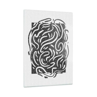 Impression sur verre - Image sur verre - Un labyrinthe coloré de lignes sur un fond crème - 50x70cm - Labyrinthe – une aventure joyeuse - Décoration murale moderne pour le salon et la chambre ARTTOR