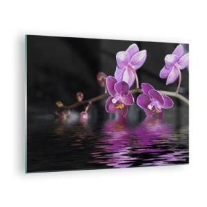 Impression sur verre - Image sur verre - Orchidées violettes se reflétant dans l'eau - 70x50cm - Reflet lilas de la beauté - Décoration murale moderne pour le salon et la chambre ARTTOR