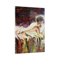 Impression sur verre - Image sur verre - Nu féminin impressionniste sur tissu coloré - 50x70cm - Vénus en pensée - Décoration murale moderne pour le salon et la chambre ARTTOR