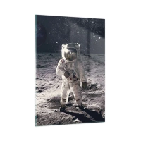 Impression sur verre - Image sur verre - Astronaute à la surface de la Lune avec la Terre en arrière-plan - 50x70cm - Salutations de la lune - Décoration murale moderne pour le salon et la chambre ARTTOR
