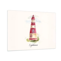 Impression sur verre - Image sur verre - Phare aquarelle avec l'inscription Phare - 70x50cm - Il y a toujours beau temps autour - Décoration murale moderne pour le salon et la chambre ARTTOR
