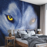 Papier Peint Photo Premium Sand - Le regard envoûtant d'un loup sur un fond sombre - 100x70cm - Regars hypnotique - Décoration murale moderne pour le salon et la chambre ARTTOR