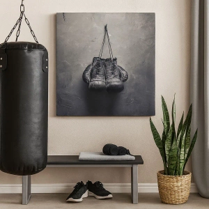 La décoration murale « Vieux gants de boxe sur fond mural » est une décoration unique alliant sobriété et élégance. Le motif central est constitué de gants de boxe présentant des traces d'usure évidentes, accrochés sur un mur texturé aux tons monochromes. Cette composition souligne le contraste entre la douceur de la matière et la dureté du fond, créant harmonie et expressivité.