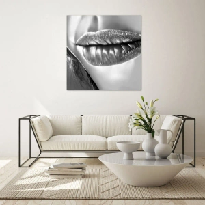 Impression sur verre - Image sur verre - Lèvres féminines sensuelles aux tons monochromes - 70x50cm - Je sais à quoi tu penses… - Décoration murale moderne pour le salon et la chambre ARTTOR