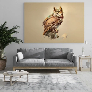 Impression sur verre - Image sur verre - Le hibou le plus intelligent - confirmera la forêt de chênes - 70x70 cm