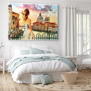 Impression sur toile - Image sur toile - Une femme admirant le paysage pittoresque au bord du canal - 70x50cm - Pour une aventure c'est uniquement dans ... - Décoration murale moderne pour le salon et la chambre ARTTOR