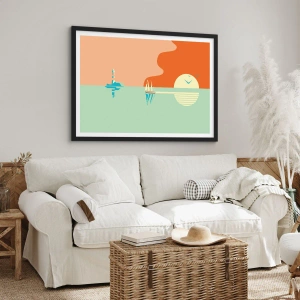 • Cette affiche représente un coucher de soleil minimaliste avec un voilier en arrière-plan. Un motif chaleureux et harmonieux, parfait pour les intérieurs calmes et modernes.