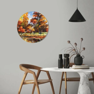 Horloge murale - Pendule murale - Paysage en or et bronze - 40x40 cm