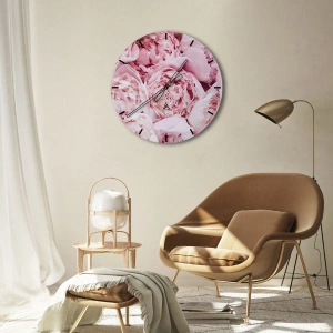 - Une horloge murale ornée d'un gros plan pastel de pivoines en fleurs dans des tons roses. Ce délicat motif floral apporte fraîcheur, romantisme et la beauté subtile de la nature à tout intérieur.