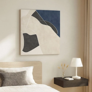 Impression sur toile - Image sur toile - Abstraction géométrique dans les tons beige et bleu marine - 140x50cm - Composition abstraite - contraste de couleurs - Décoration murale moderne pour le salon et la chambre ARTTOR