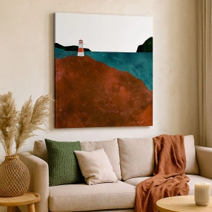 - Ce tableau représente un phare sur fond de montagnes majestueuses et d'une mer calme. C'est la décoration idéale, apportant harmonie et atmosphère naturelle à tout intérieur.