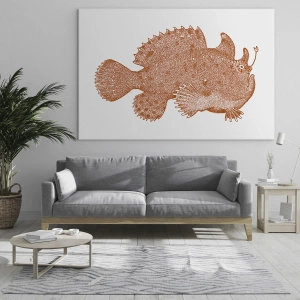 Impression sur verre - Image sur verre - Un dessin rouillé d'un poisson des profondeurs réalisé à l'aide de la technique du point - 70x50cm - Et pourtant un poisson - Décoration murale moderne pour le salon et la chambre ARTTOR