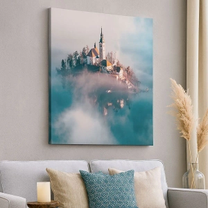 - Une vue charmante de l'île et de son église, enveloppée de brouillard, respire la paix et l'harmonie. Ce tableau est parfait pour les intérieurs qui capturent la beauté de la nature et de la réflexion.