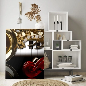 Ce tableau sera un excellent choix pour les mélomanes, les passionnés d'art et les personnes appréciant les décorations intérieures originales. Il s'intégrera parfaitement dans les salons, les salles de musique et les bureaux, ajoutant élégance et créativité à l'espace. Les couleurs du tableau, comme l'or et le rouge, apporteront chaleur et caractère artistique, soulignant votre passion pour la musique.