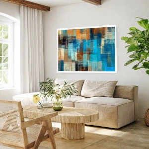Affiche - Poster - Motifs géométriques abstraits dans des tons de bleu - 50x70cm - A travers le voile bleu - Décoration murale moderne pour le salon et la chambre ARTTOR