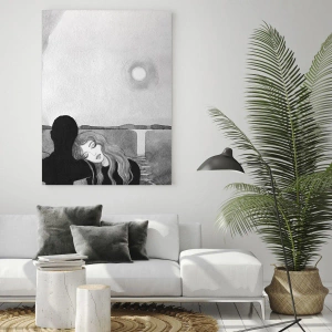 La peinture sur verre est faite sur un verre de 4 mm d'épaisseur. Les bords du verre ont une arête trapézoïdale mate. La tableau est sûr à l'utilisation et prêt à être accroché - il a des crochets en métal attachés à l'arrière du cadre et des entretoises en mousse permettant la régulation uniforme de la distance du tableau au mur.