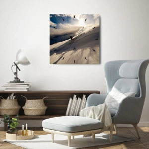 Horloge murale - Pendule murale - Un skieur sur une piste entourée de montagnes et de neige - 30x30cm - Défi montagne accepté - Décoration murale moderne pour le salon et la chambre ARTTOR