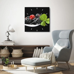 Horloge murale - Pendule murale - Framboises et mûres sur fond de feuilles vertes - 30x30cm - Le goût de la fraîcheur - Décoration murale moderne pour le salon, la cuisine et la chambre ARTTOR